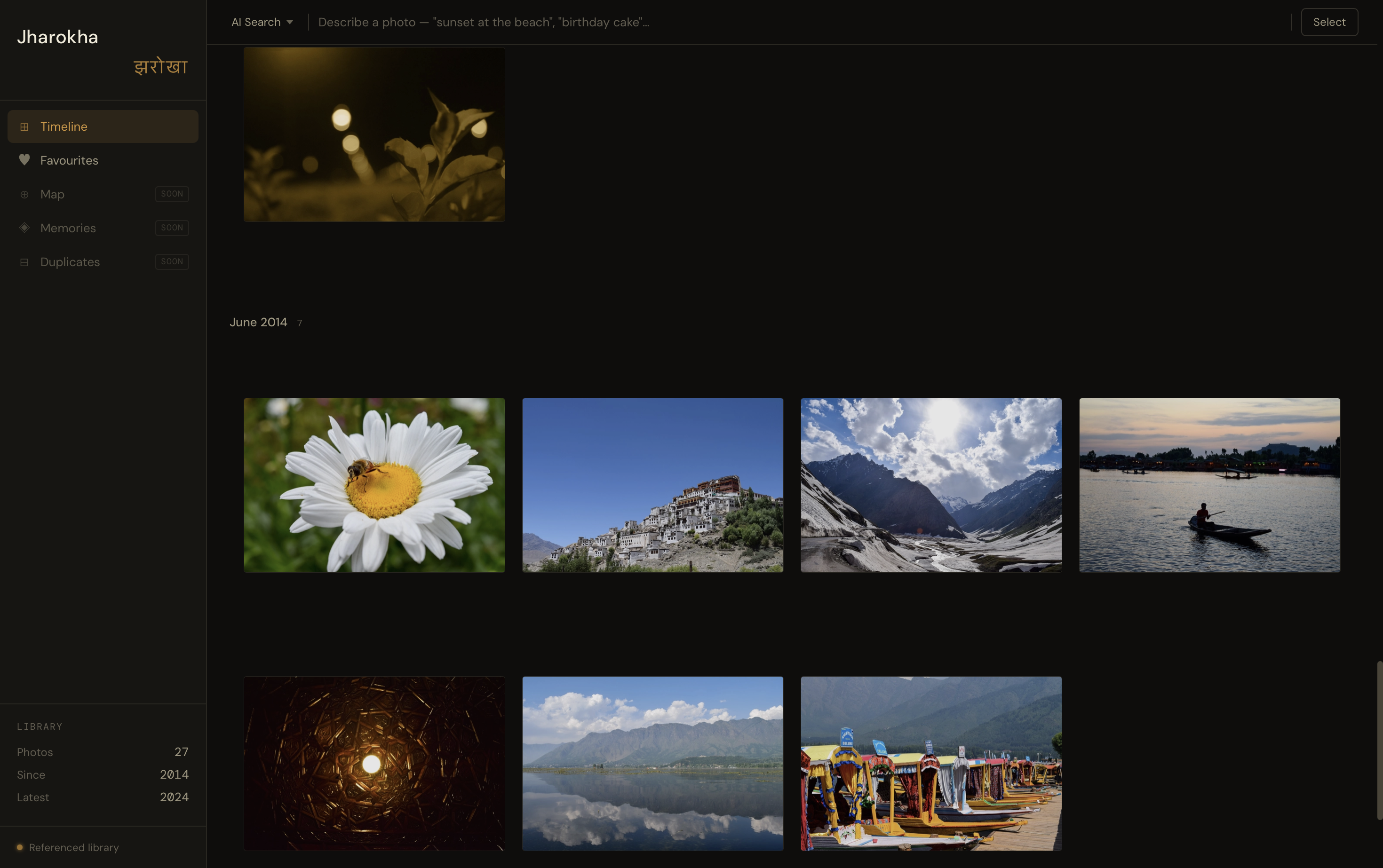 Jharokha is currently in a "functional MVP" state. I’m using it to manage a real library with over 5k photos. Next on the terminal? Implementing face recognition, a memories feature for daily and weekly reminders, and eventually packaging it with Tauri to make it a true desktop experience.